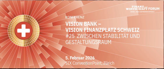 Diese Fragen stehen im Zentrum der Konferenz «Vision Bank – Vision Finanzplatz Schweiz #25», die am 5. Februar 2026 im ConventionPoint der SIX in Zürich stattfindet. Wir freuen uns, die Konferenz wiederum als Kooperationspartner zu begleiten.